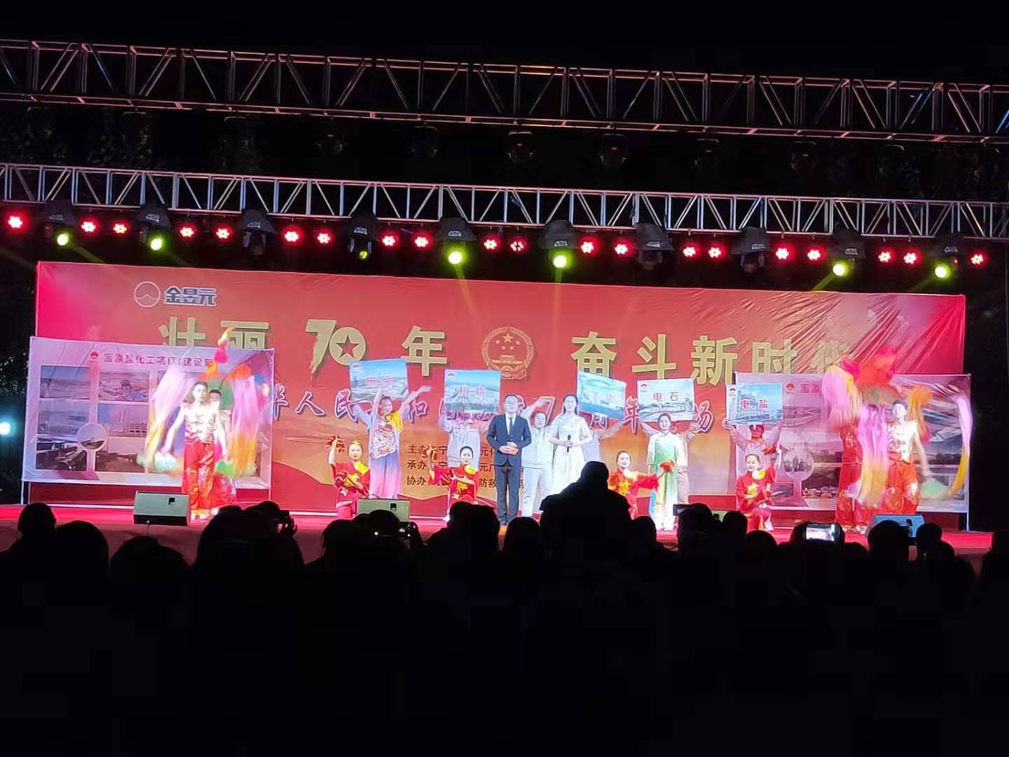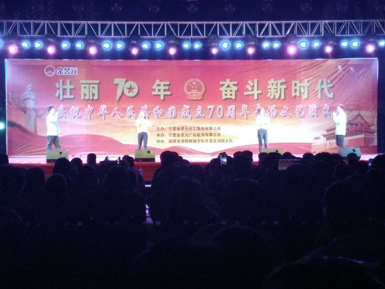 為慶祝新中國成立70周年,寧夏金昱元化工集團攜手固原市開發(fā)區(qū)消防大隊舉辦了以“壯麗70年,奮斗新時代”為主題的文藝匯演晚會,2019年9月26日晚,文藝匯演來到固原片區(qū),固原經(jīng)濟開發(fā)區(qū)管委會,固原市工信局,固原市消防救援支隊開發(fā)區(qū)消防大隊,集團公司、固原片區(qū)相關領導以及各子公司職工代表,外協(xié)單位共計400余人觀看了本次文藝匯演活動。