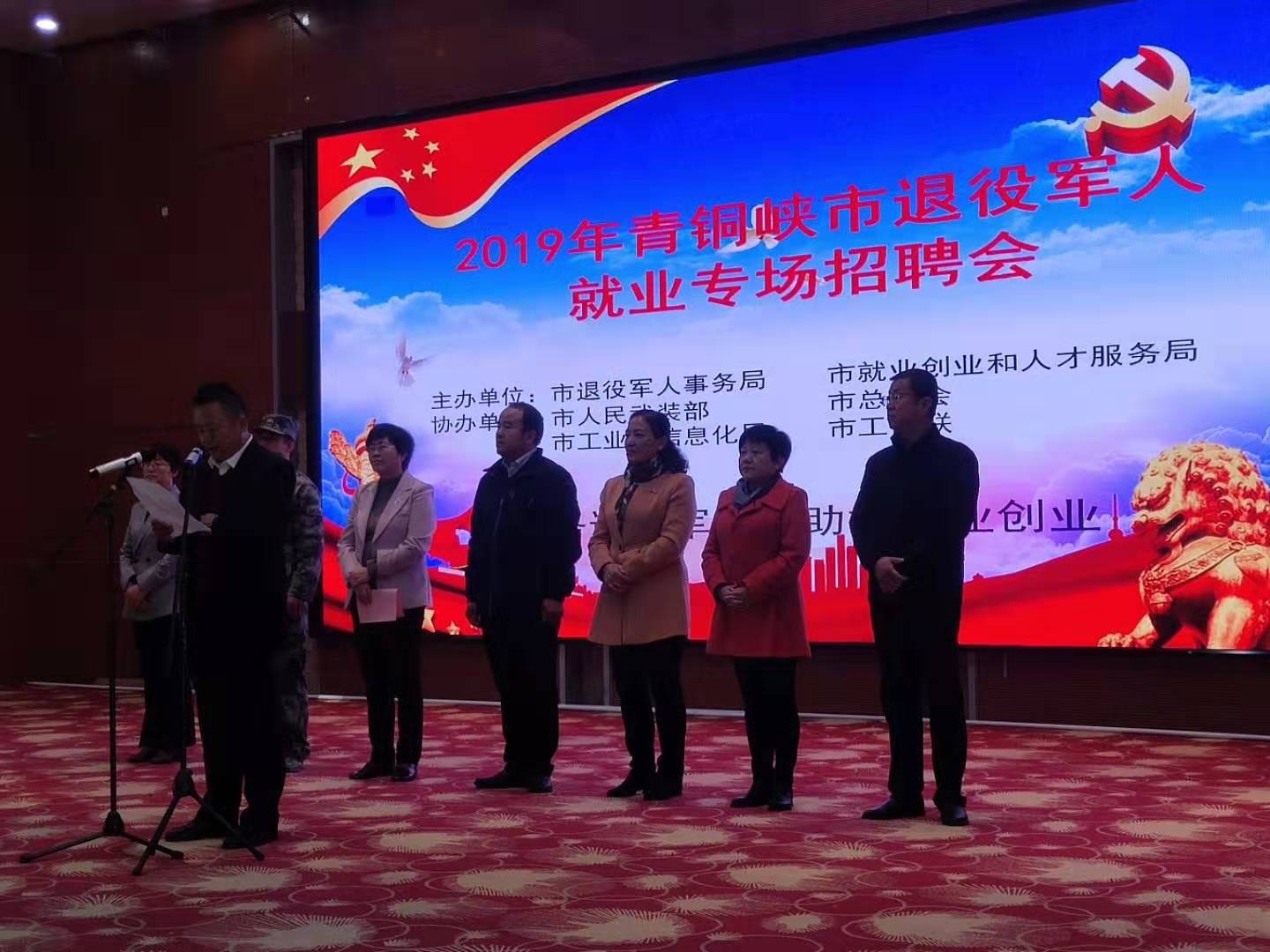 2019年10月23日上午,資源再生公司組織人員參加由青銅峽市退役軍人事務(wù)局、就業(yè)創(chuàng)業(yè)和人才服務(wù)局主辦的2019年退役軍人就業(yè)專場招聘會。招聘現(xiàn)場,前來咨詢的人員絡(luò)繹不絕,通過我們的詳細(xì)介紹,擁有一技之長和大專畢業(yè)證的退伍軍人對我公司的維修崗位有就業(yè)意向,填報名表的將近有十人,我們期待他們的加入,并在資源再生這個大舞臺展現(xiàn)他們的風(fēng)采。