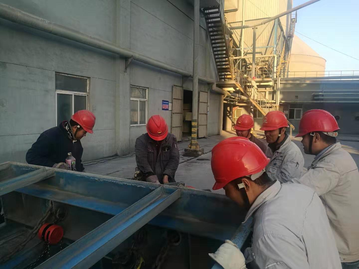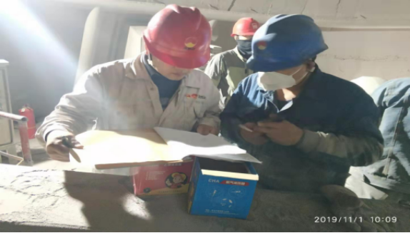 一、成品裝置長黃勃強(qiáng)帶領(lǐng)維修工對均化庫底空氣斜槽技改,認(rèn)真辦理受限空間作業(yè)票證。指導(dǎo)維修人員計(jì)算材料,核對圖紙,然后利用簡單的工具就地進(jìn)行比劃!