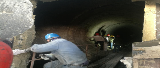窯磚緊固。加塞,在轟鳴的風鎬聲中,夾雜著交替起落的敲擊聲,工友們,正頂著滿面的塵灰完成作業。