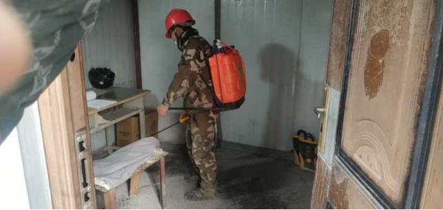 在園區南門,面對寒風,他們從容不迫,是責任,更是忠誠的奉獻。當日截止下午17時整,他們檢測、消毒、登記車輛53輛,人員53人,車輛正常,人員體溫均在正常范圍。