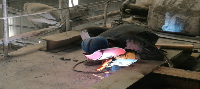 (8)回轉窯輪帶擋圈及墊板補焊加固,檢查大齒圈齒面磨損并對齒面打磨修復(未完成);