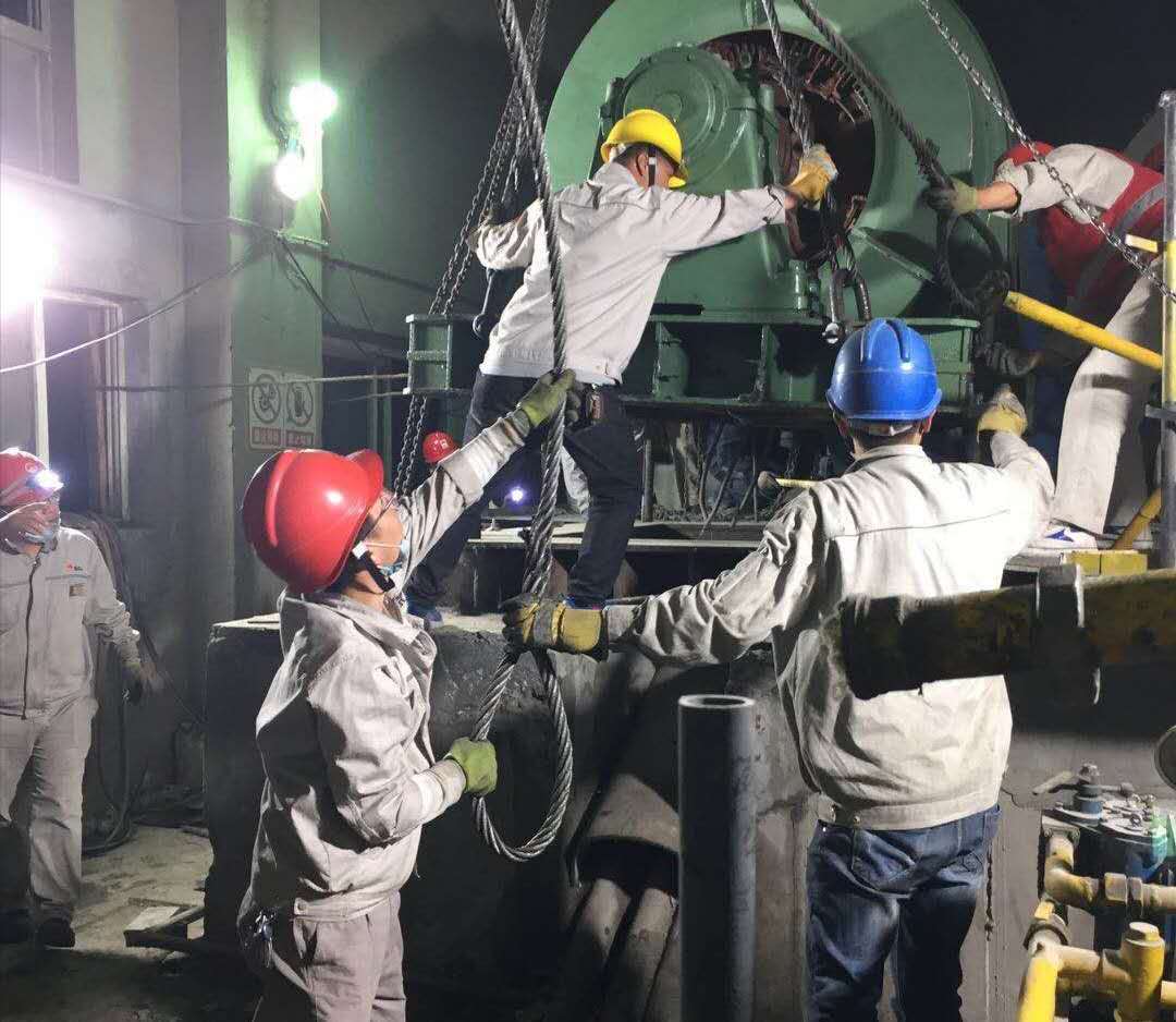 四月底的天氣,白天溫暖如春,晚上卻冷的像冬天。就是這樣的天氣,在資源再生公司一號水泥磨電機安裝現場,卻如火如荼的上演著熱火朝天的電機安裝場面?偨浝怼⒏苯浝、科長、專業技術管理人員、各裝置維修工等等,全部堅守現場,為盡快完成電機安裝任務貢獻自己微薄的力量。
