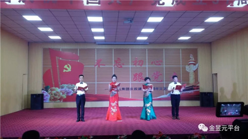 會(huì)后,以“不忘初心跟黨走”為主題,舉辦了慶祝建黨97周年文藝演出,演出圍繞“頌歌獻(xiàn)給黨”這一主要演出內(nèi)容,以歌舞、大合唱、詩(shī)朗誦、四重唱為主要表現(xiàn)形式,還自編創(chuàng)作了小品《我想入黨》,音樂快板《幸福金昱元》,營(yíng)造了歌頌黨、歌頌人民、歌頌改革開放和企業(yè)發(fā)展取得的偉大成就,暢想新時(shí)代、中國(guó)夢(mèng)。