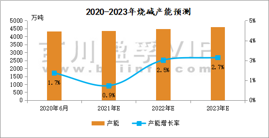 由此可見,2020年全國總產能實現穩步增長,但整體增速相比同期有所下降,受全球公共衛生事件沖擊,燒堿下游需求表現不佳,整體行情不甚樂觀。出于整體需求和供需平衡考量,預計未來產能增速將有放緩表現,具體發展變化還需關注后續全球公共衛生事件處置情況及市場行情實時變化。