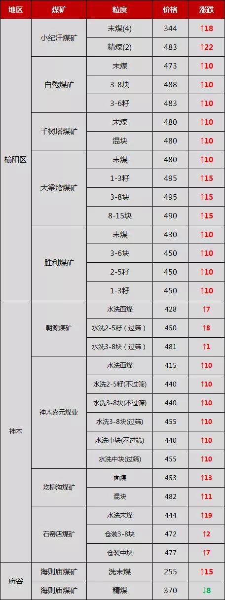 近日,榆林煤礦地銷價(jià)持續(xù)上漲,主要因?yàn)榇笮偷V井都以保鐵路發(fā)運(yùn)為主,地銷量非常少,所以許多地銷客戶只能從小型礦井拉運(yùn),助推煤價(jià)上漲。 比如,目前榆陽(yáng)區(qū)小紀(jì)汗煤礦、杭來(lái)灣煤礦、榆樹(shù)灣煤礦、金雞灘煤礦地銷量非常少,所以榆陽(yáng)區(qū)其他小礦持續(xù)上調(diào)價(jià)格。 最新調(diào)價(jià)表: