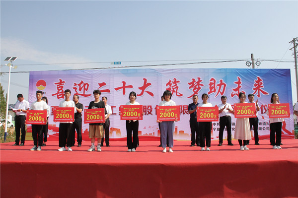 金昱元化工集團黨委書記、副董事長陳文泓發表講話,他代表寧夏金昱元化工集團向今年考取大學的學子們表示衷心的祝賀,同時獻上企業一份愛心。他說,金昱元化工集團自1991年成立以來,在社會各界的大力支持下,經過30多年發展,逐漸形成了以氯堿化工為龍頭、固廢資源化綜合利用、綠色清潔生產特征顯著的氯堿化工產業集群。多年來,公司積極履行社會責任,持續為社會公益事業和光彩事業做出貢獻,取得一定成效,并在社會產生良好聲譽。捐資助學是一項功在當代,利在千秋的事業,是中華民族傳統美德在新時代的發揚和傳承,我們會把助學活動一如繼往地開展下去。希望今天受到捐助的學子們不負韶華、勤奮學習,早日學成歸來,為家鄉建設做出貢獻;也希望學子們樹立遠大理想,做新時代青年的楷模,以優異的成績回報社會。屆時,金昱元化工集團也將張開雙臂,熱情歡迎大家入職金昱元,與金昱元攜手共進,共創好未來。