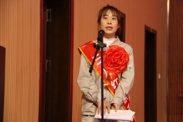 女職工代表?xiàng)钴饺匕l(fā)言。她向集團(tuán)公司對廣大女職工們的關(guān)愛表示衷心的感謝,為企業(yè)給她們提供實(shí)現(xiàn)自身價(jià)值的廣闊平臺表示誠摯的謝意。她號召全體女職工共同努力,勇挑重?fù)?dān)、務(wù)實(shí)苦干,為開創(chuàng)金昱元更加輝煌燦爛的明天踔厲奮發(fā)、不斷前行。