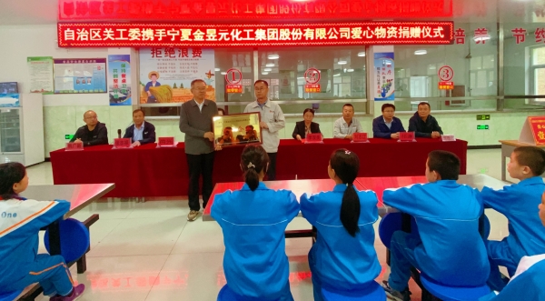 寧夏關心下一代工作委員會集金委主任、寧夏關心下一代基金會常務副理事長李作忠向寧夏金昱元化工集團股份有限公司頒授“愛心企業(yè)”牌匾。
