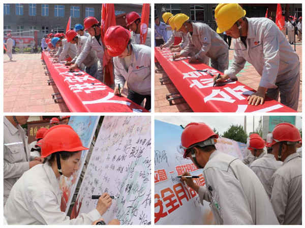 大家在簽字版上簽下自己的姓名,鄭重承諾,將牢固樹立安全意識,以身作則、嚴(yán)以律己,嚴(yán)格規(guī)范安全行為,防止各類事故發(fā)生,共同維護(hù)公司安全穩(wěn)定局面。